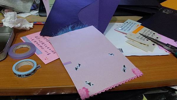 另外還有趁著購買美勞材料時一起買了白色和粉紅色的布蕾絲膠帶,